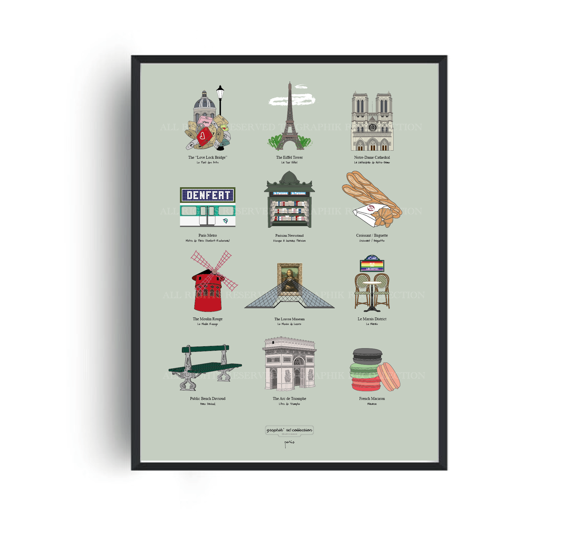 A graphic illustration of Paris. Amazing gift to anyone who has a special relationship with Paris.